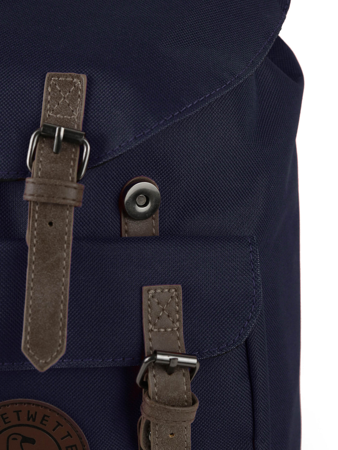 OPTISCHES HIGHLIGHT: Mit den Elementen in Lederoptik setzt der vielseitig nutzbare Rucksack ein optisches Highlight.