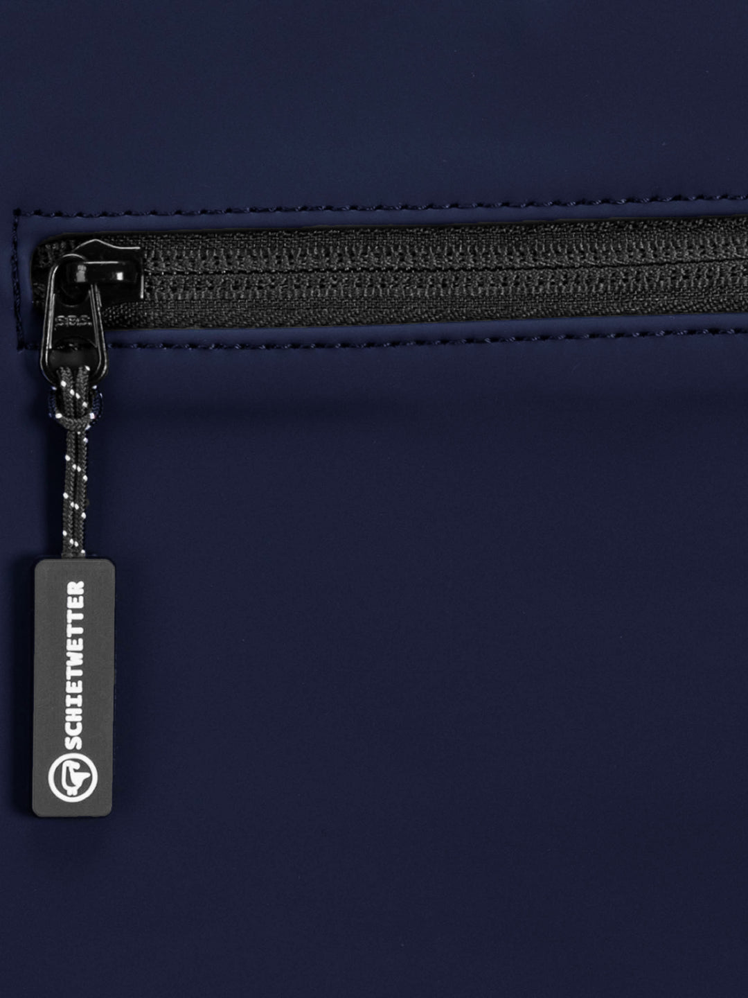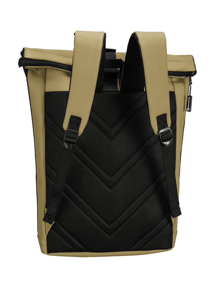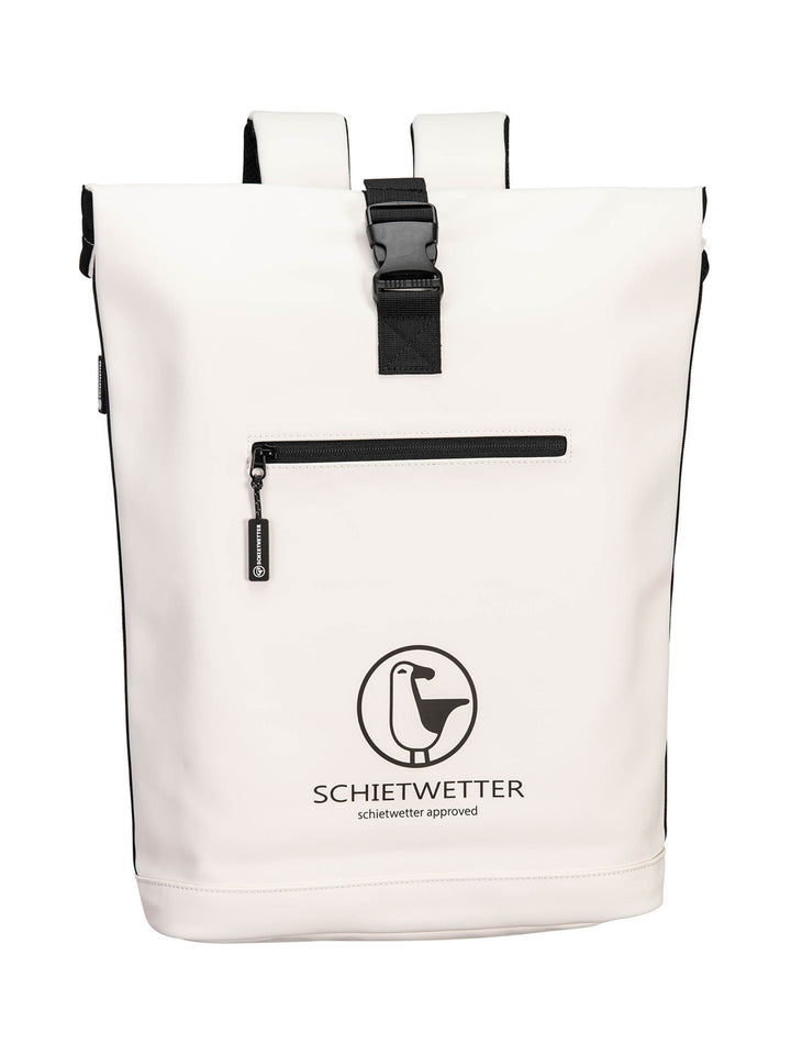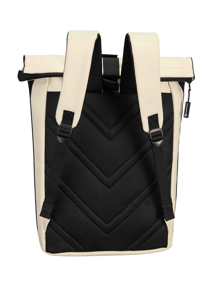 Das weiche Rückenpolster sorgt für Tragekomfort. Ein kleines Fach an der Front ermöglicht die geordnete Aufbewahrung kleinerer Gegenstände, während das Hauptfach sich umknicken lässt, um vor eindringendem Wasser zu schützen.