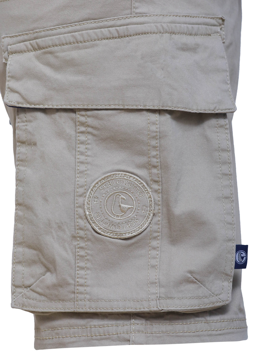 Neben praktischen Eingriffstaschen findest Du zwei seitliche Cargo-Taschen mit Patte und zwei Gesäßtaschen – genug Platz für Handy, Schlüssel und Co. Dezente Logo-Stickereien und ein stabiler Verschluss mit Knopf und Reißverschluss machen den Look komplett.