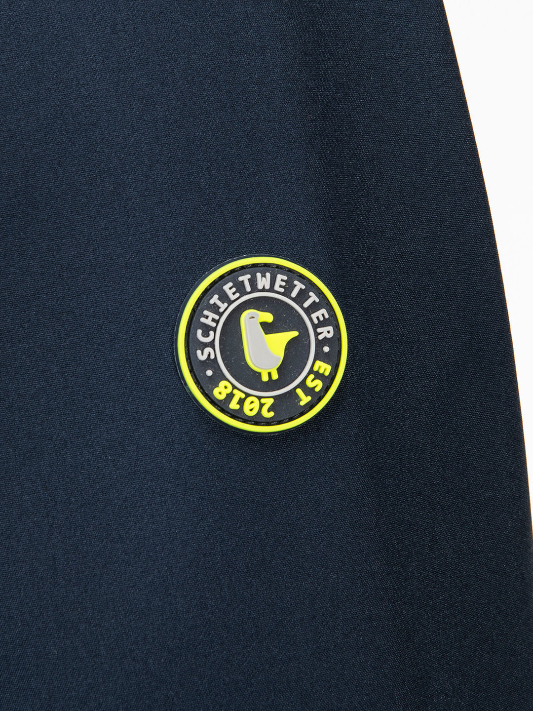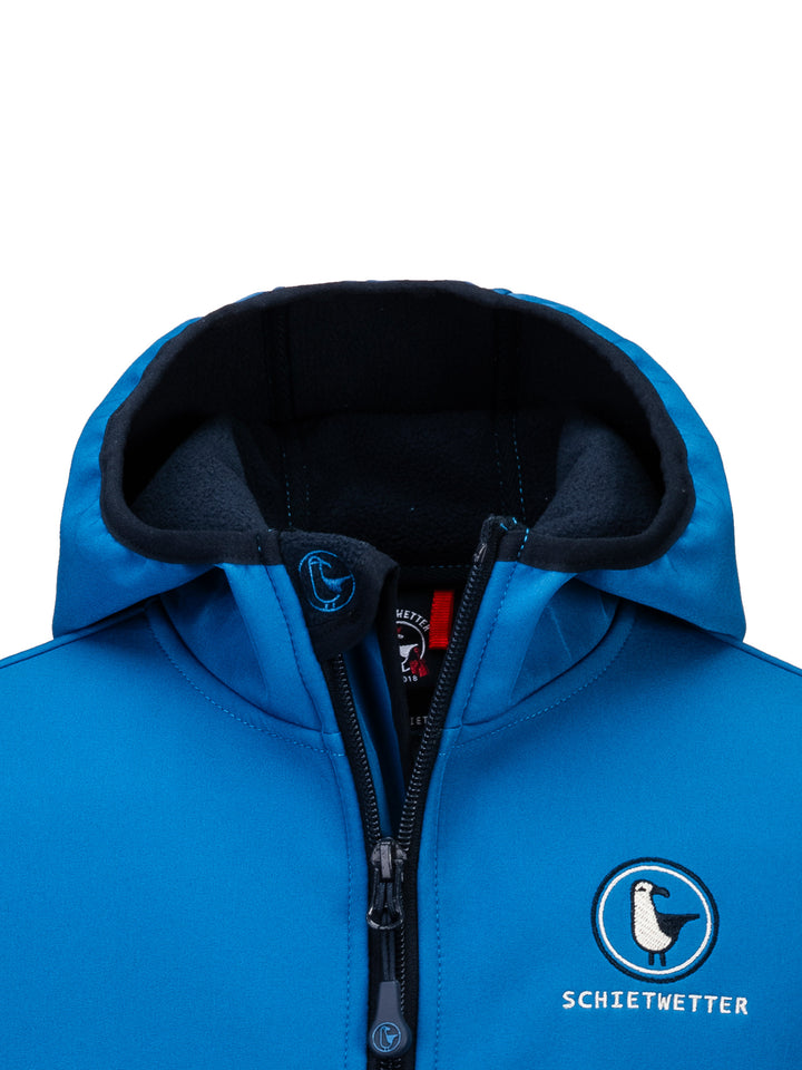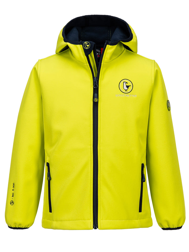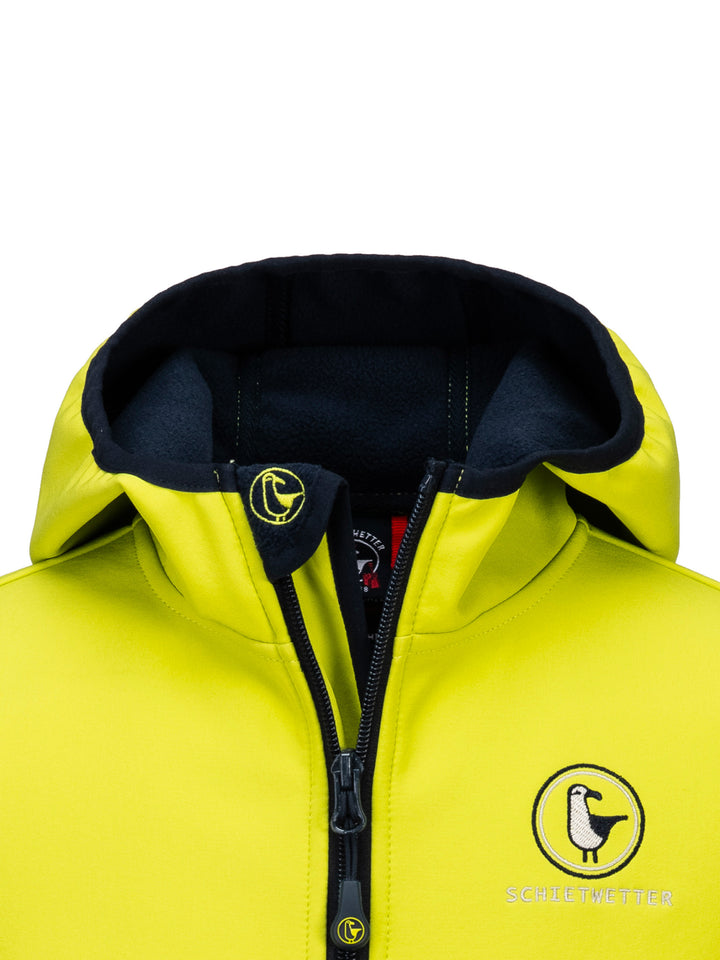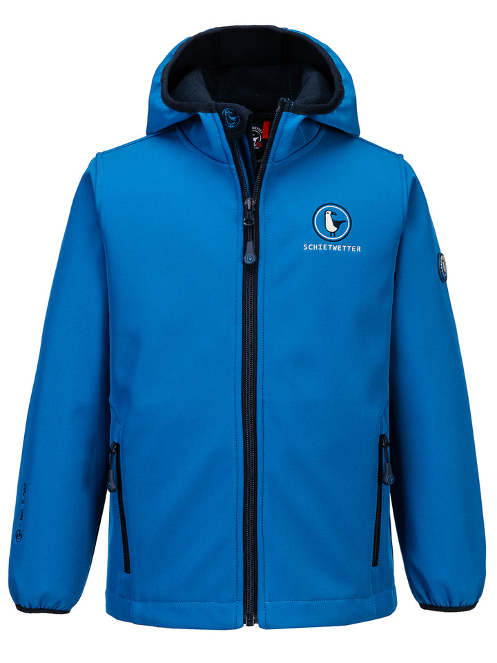 Mit elastischen Ärmelenden und einer praktischen Kapuze ist die Softshelljacke Michel perfekt ausgestattet für jede Outdoor-Aktivität. Das markante Schietwetter-Logo und die integrierten Reflektoren erhöhen die Sichtbarkeit und Sicherheit der Kinder im Straßenverkehr.