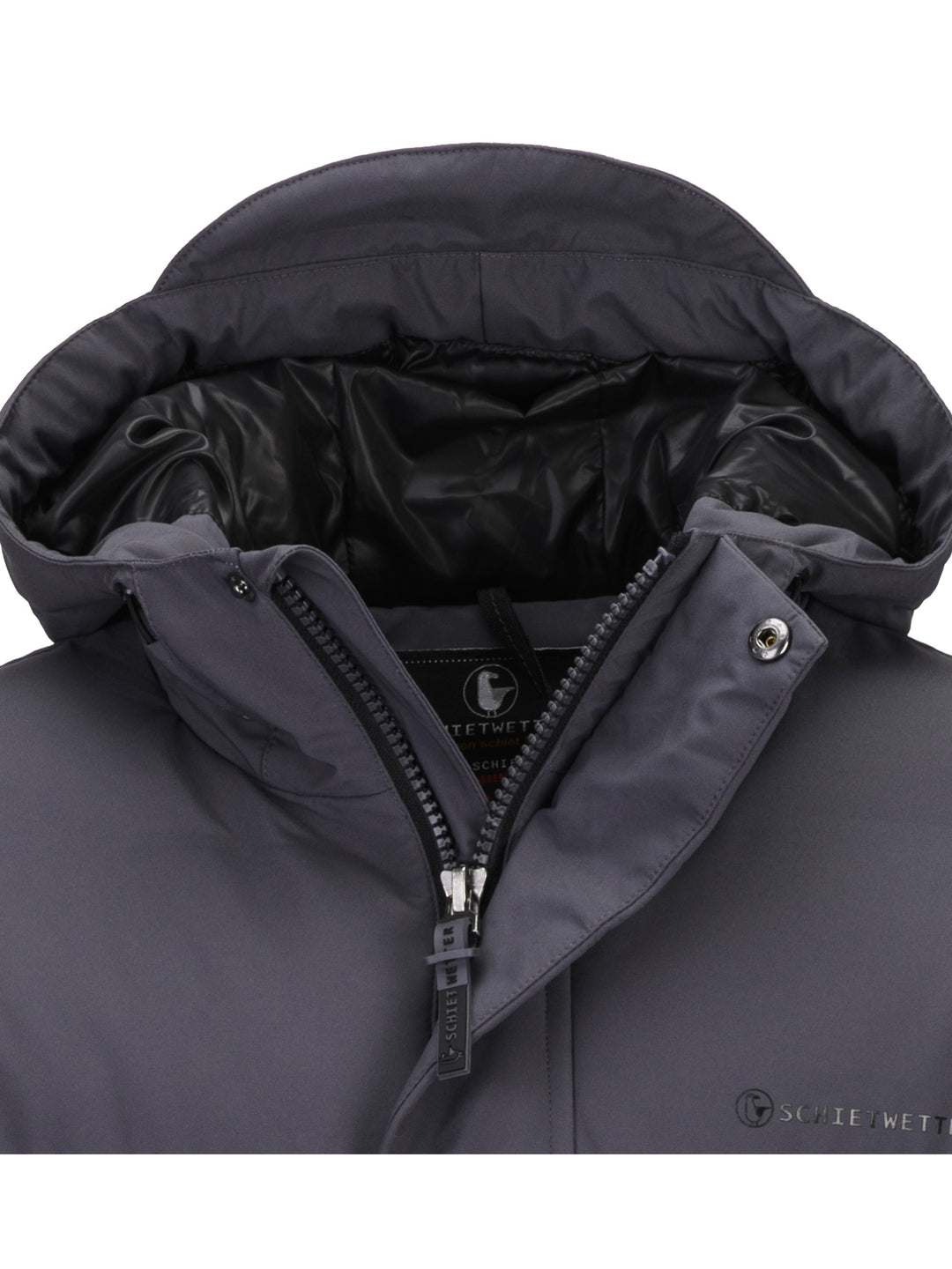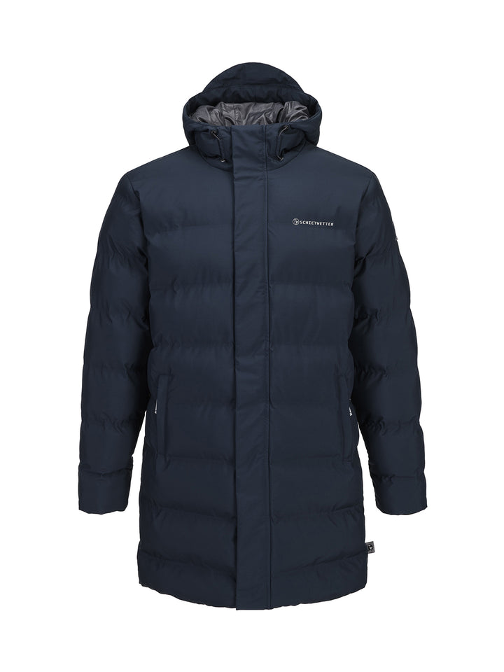Damit du diese Zeit in vollen Zügen genießen kannst, haben wir den Steppmantel 'Blind Pew' entwickelt. Er ist wie dein persönlicher Kokon, der dich wohlig warm hält, während die Welt um dich herum gefriert. Die breiten, prall gefüllten Kammern der Wattierung sind nicht nur ein modisches Statement, sondern vor allem ein hocheffektiver Kälteschutz. Der lange Schnitt wärmt dich bis zu den Oberschenkeln, und wenn der Wind pfeift, ziehst du einfach die große, ebenfalls gefütterte Kapuze auf und schließt den Reißverschluss bis unters Kinn. Du wirst die Kombination aus Leichtigkeit und intensiver Wärme lieben.