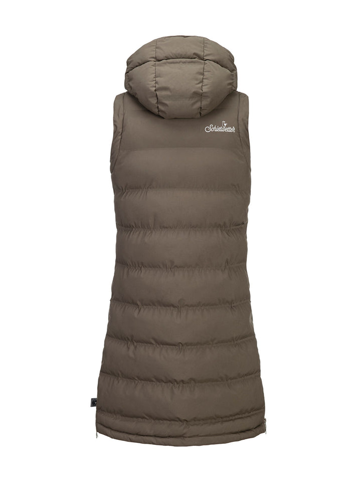 Die lange Damen Steppweste Goldkehle Alma von Schietwetter ist die perfekte Wahl für Frauen, die Wärme und Stil gleichermaßen schätzen. Diese Weste verleiht Ihrem Outfit eine stilvolle Note und hält Sie gleichzeitig warm und trocken.