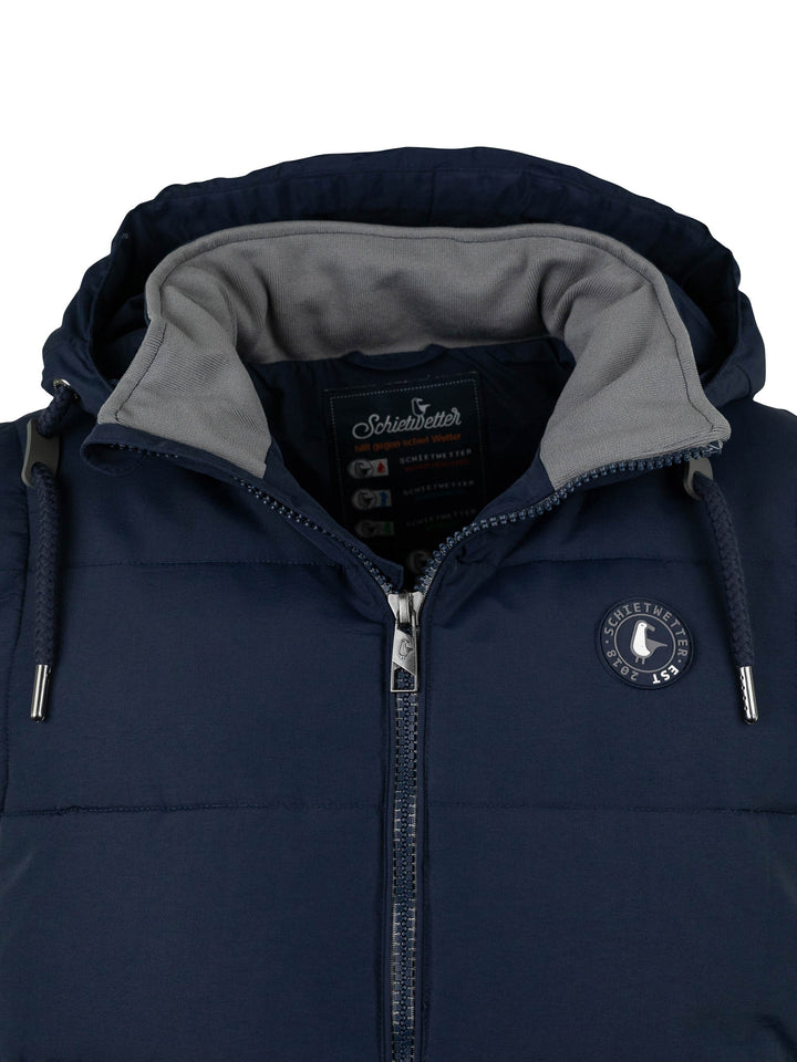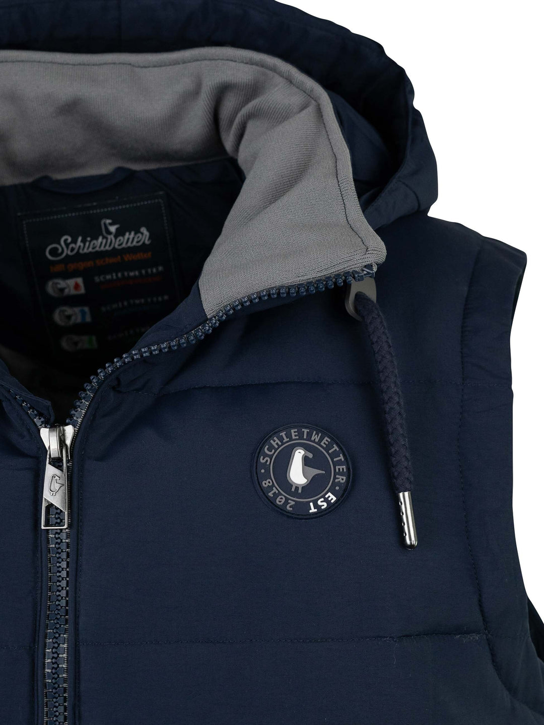 Die wind- und wasserabweisende Herren Steppweste Strandräuber von Schietwetter wurde aus hochwertigem Polyester gefertigt. Die wärmende Weste mit Kunstfaserfüllung dient für die Übergangssaison oder als extra Wärmeschutz an frostigen Frühjahr-; Herbst-, oder Wintertagen.