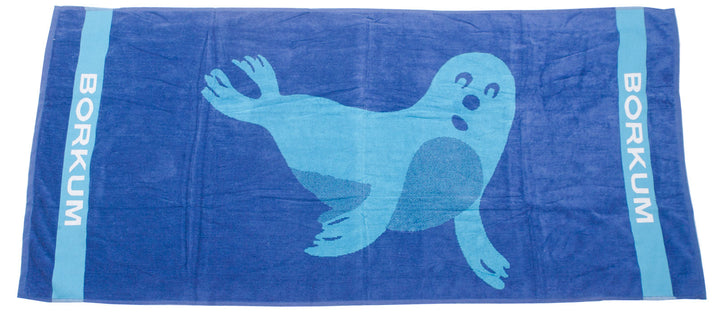 Dieses Strandhandtuch ist das perfekte Urlaub-Mitbringsel und ein Must-Have für jeden, der seine Zeit am Wasser verbringt. Zeige deine Borkumliebe und mach dich bereit für den nächsten Sommer mit dem Strandhandtuch „Robbe“.