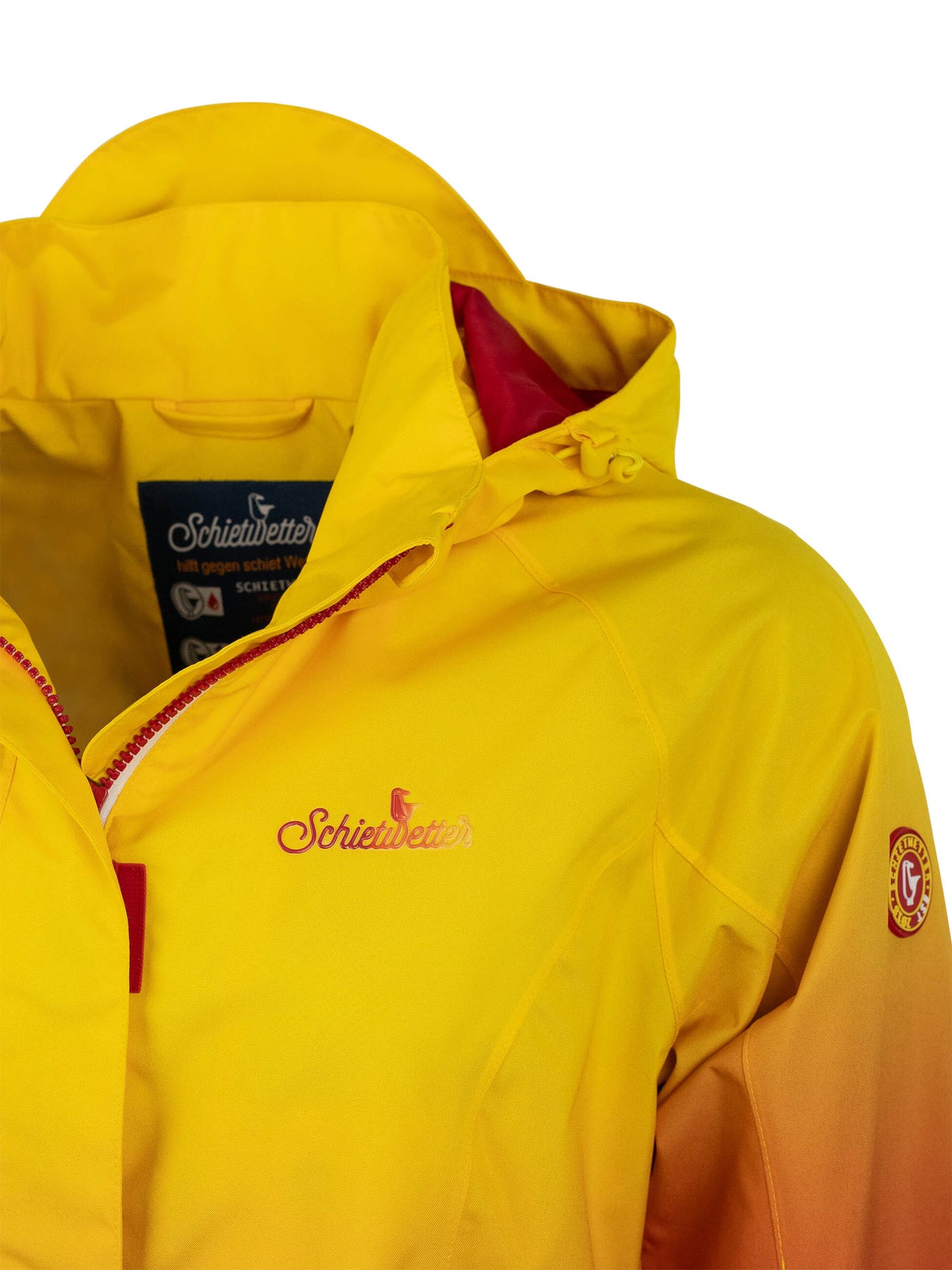 Unsere Funktionsjacke 'Flaggen Frieke' ist der beste Beweis dafür. Ihr Herzstück ist der wunderschöne, fließende Farbverlauf, der so einzigartig ist wie ein norddeutscher Himmel nach einem Regenschauer. Doch hinter der atemberaubenden Optik verbirgt sich volle Funktion: Das Material ist absolut wind- und wasserdicht, sodass du dir um das Wetter keine Sorgen machen musst. Dank der hohen Atmungsaktivität kommst du auch nicht ins Schwitzen. Der feminine, leicht taillierte Schnitt sorgt für eine tolle Figur, und praktische Details wie die im Kragen verstaubare Kapuze und die sicheren Reißverschlusstaschen machen sie zum perfekten Begleiter für jeden Tag.