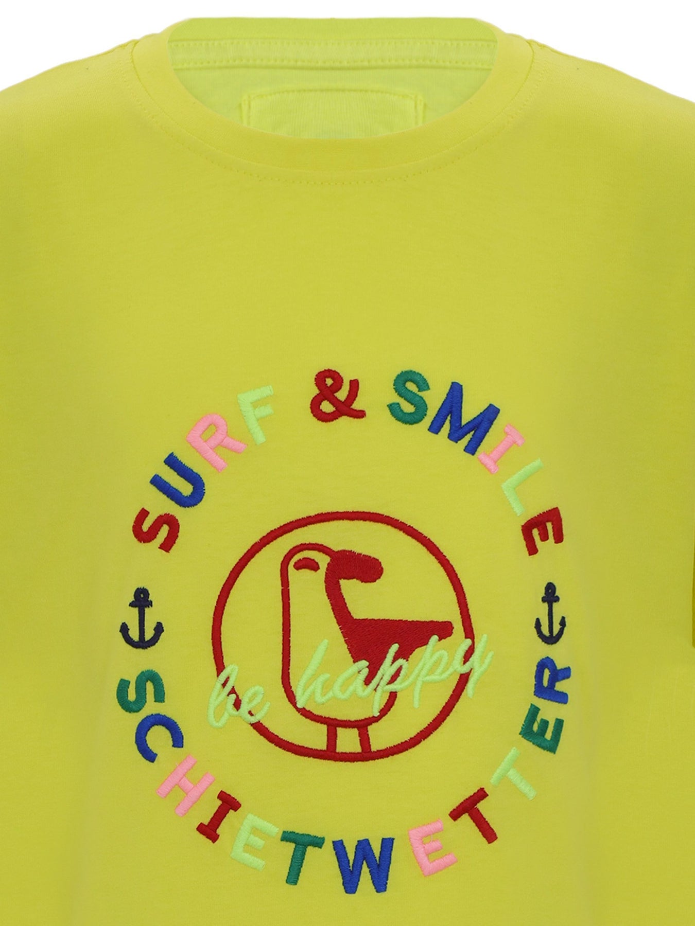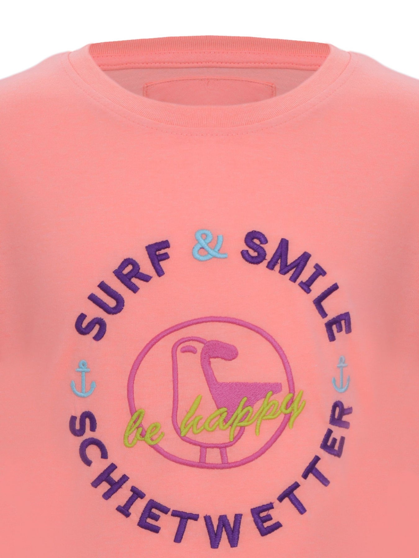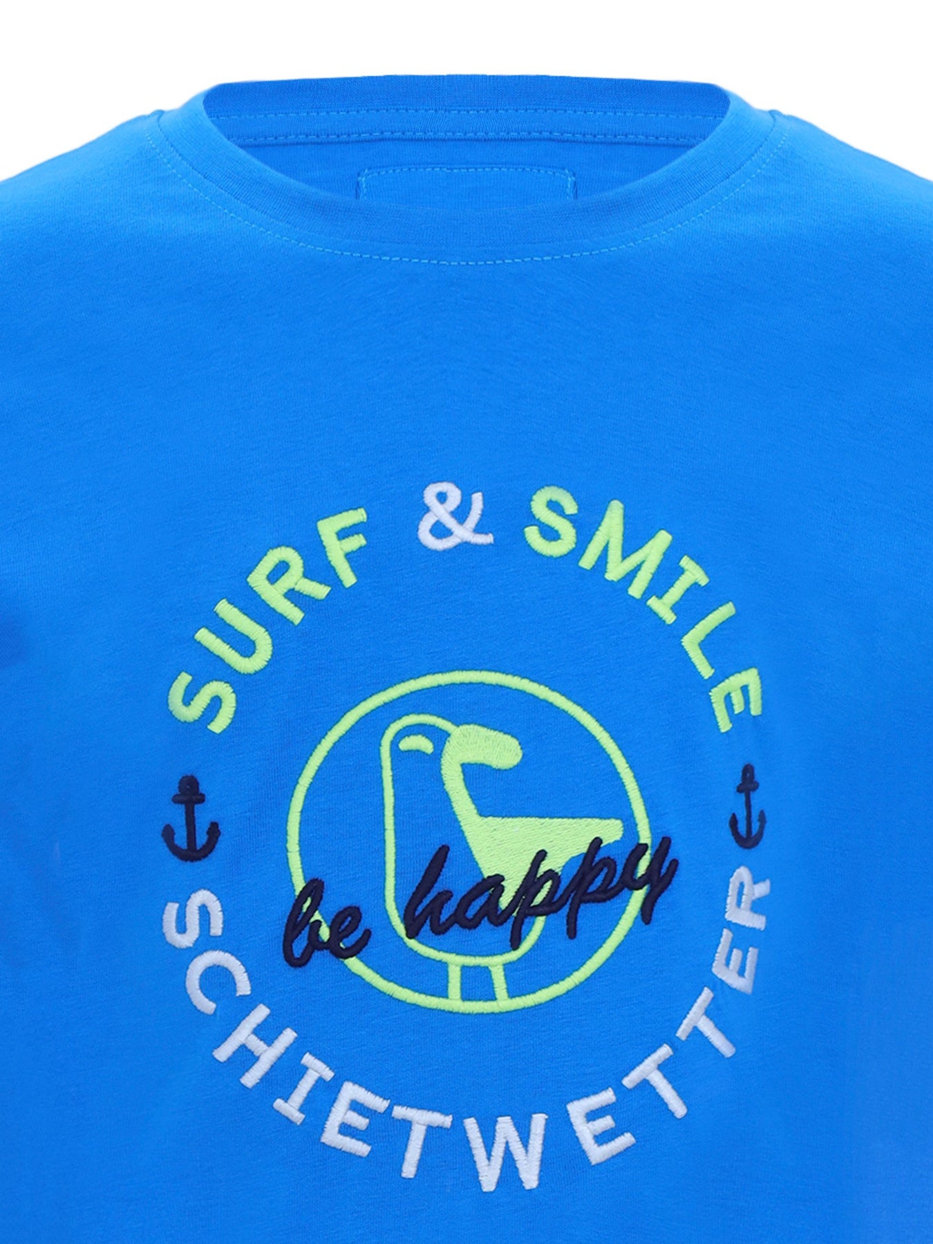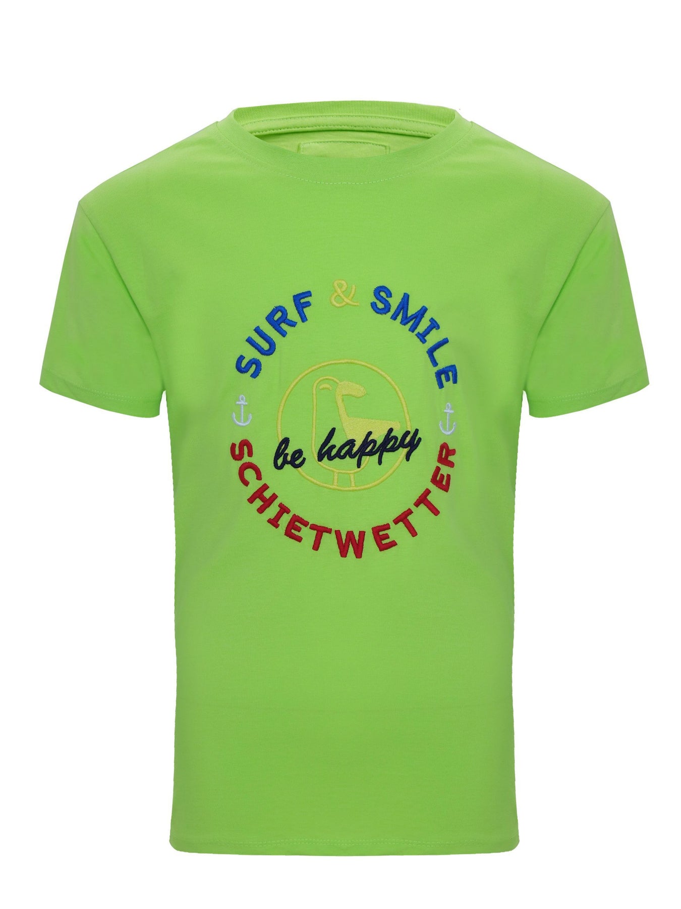 • DESIGN: Kinder T-Shirt für Mädchen und Jungs mit großer Stickerei und fröhlichem Schriftzug