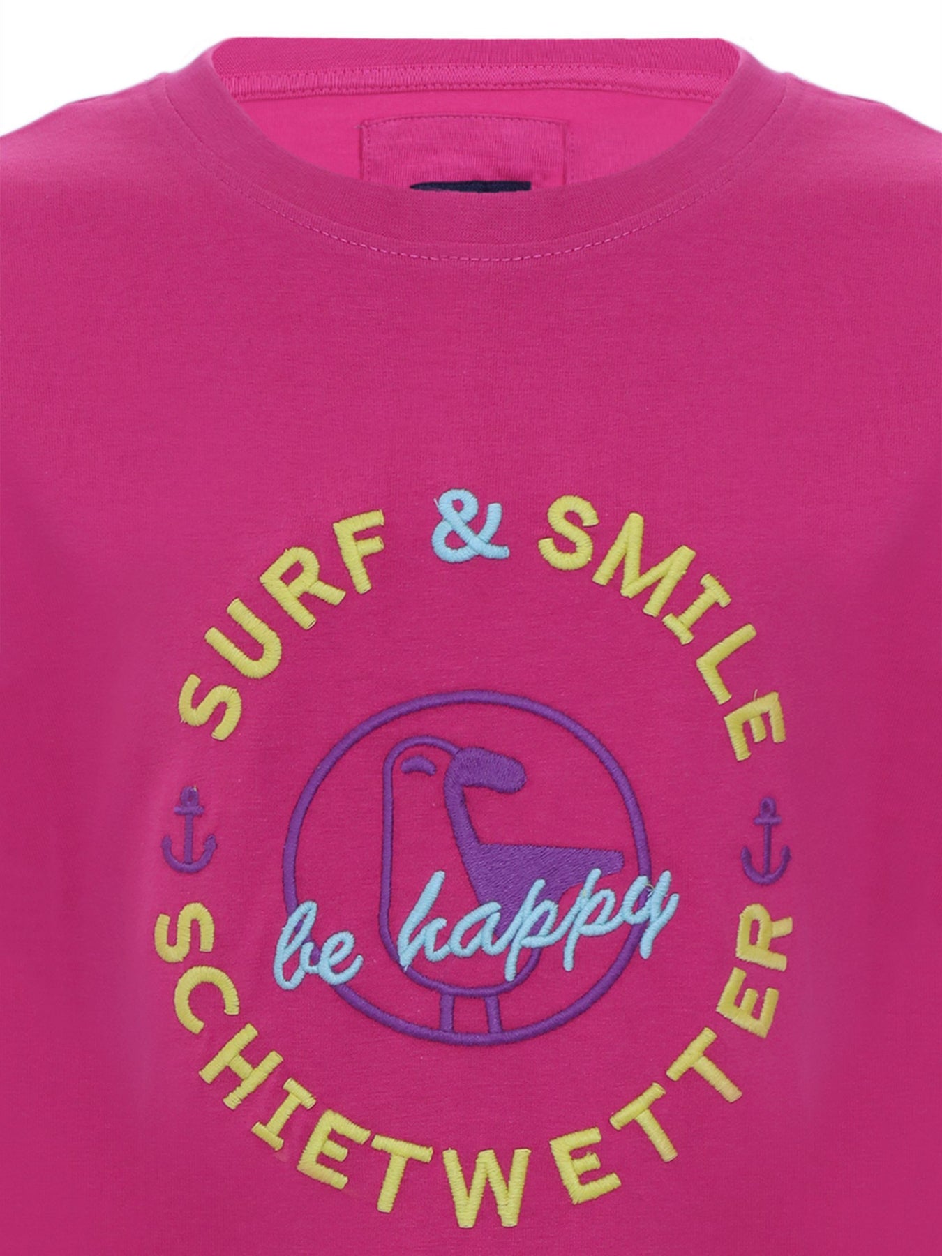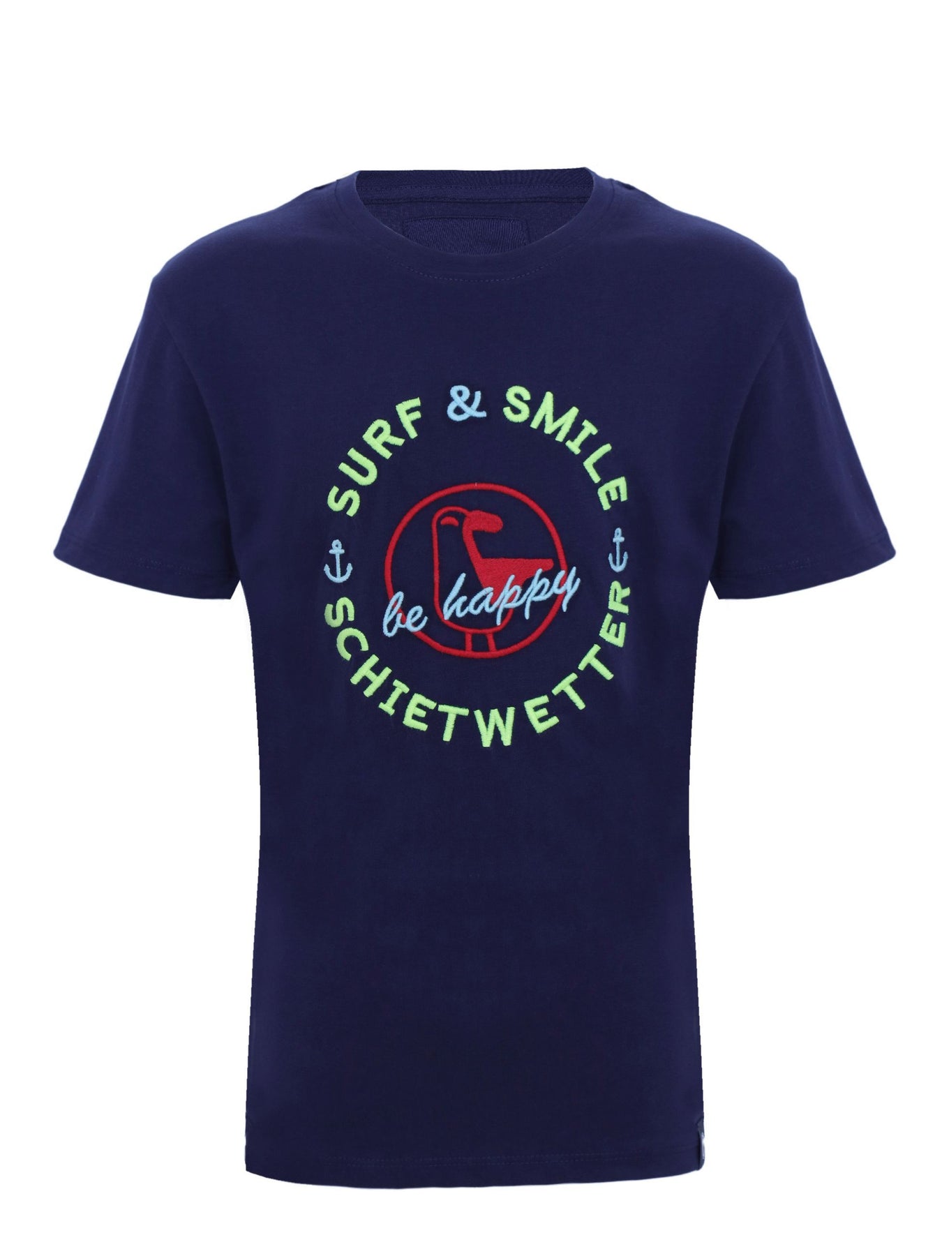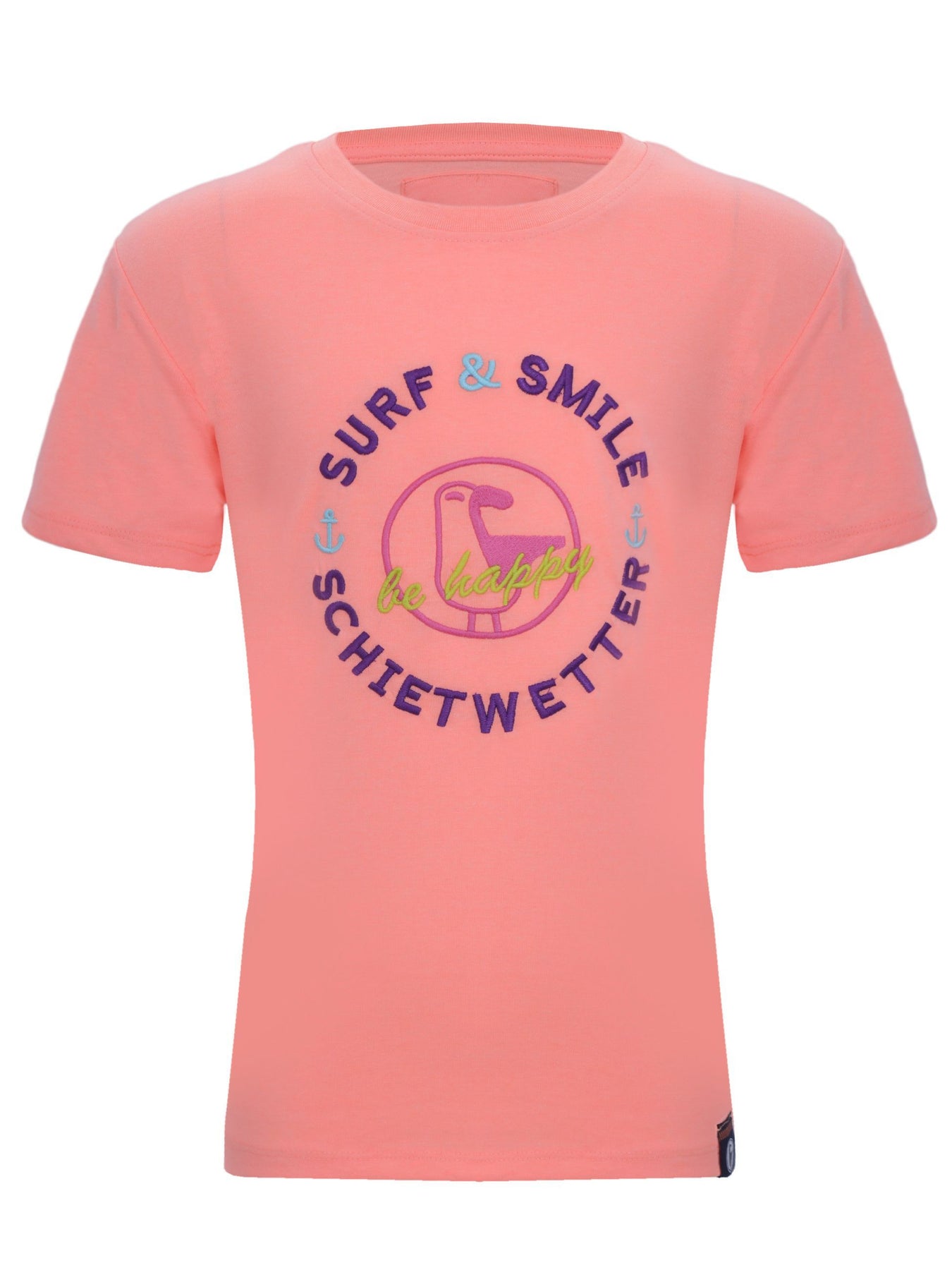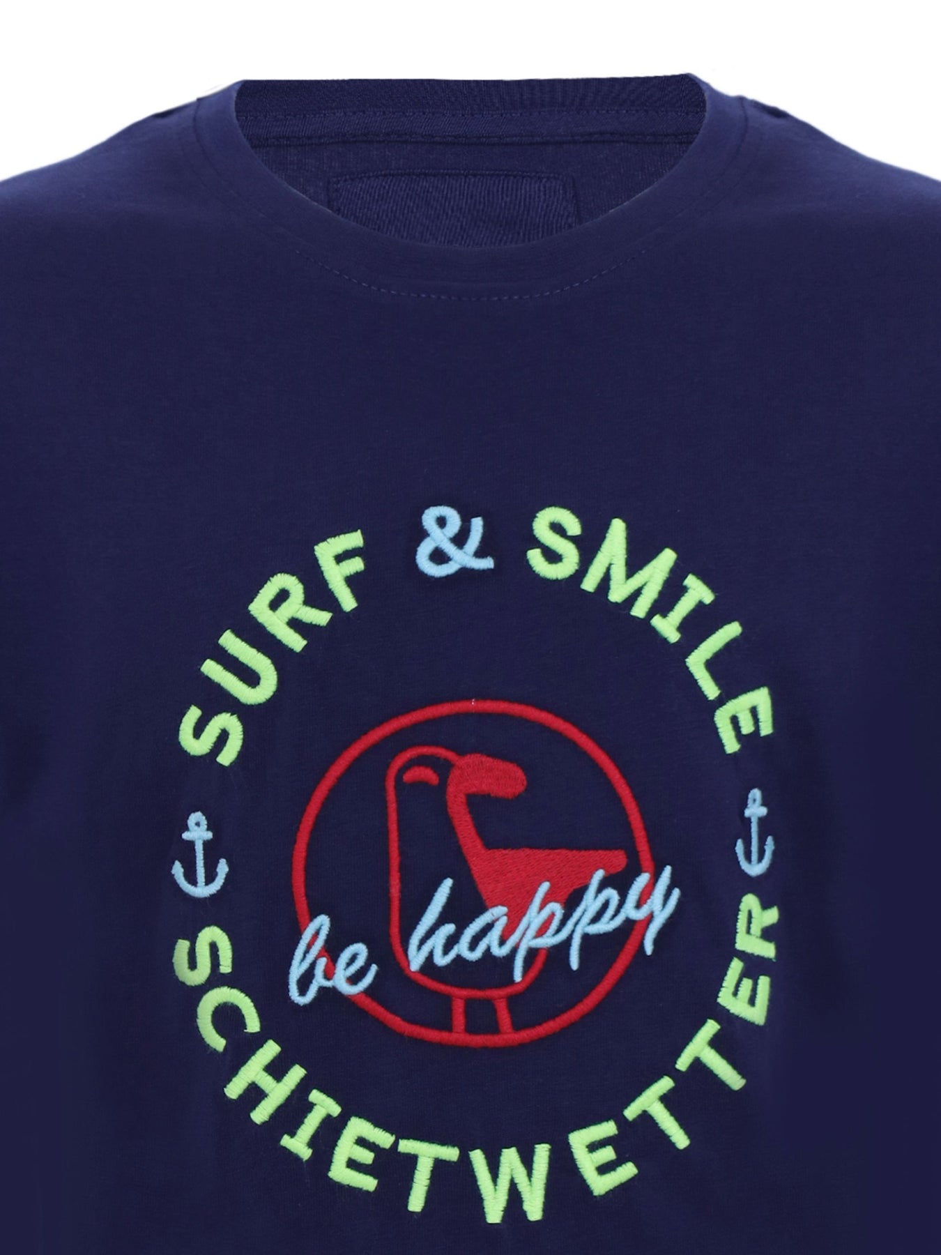 • DESIGN: Kinder T-Shirt für Mädchen und Jungs mit großer Stickerei und fröhlichem Schriftzug