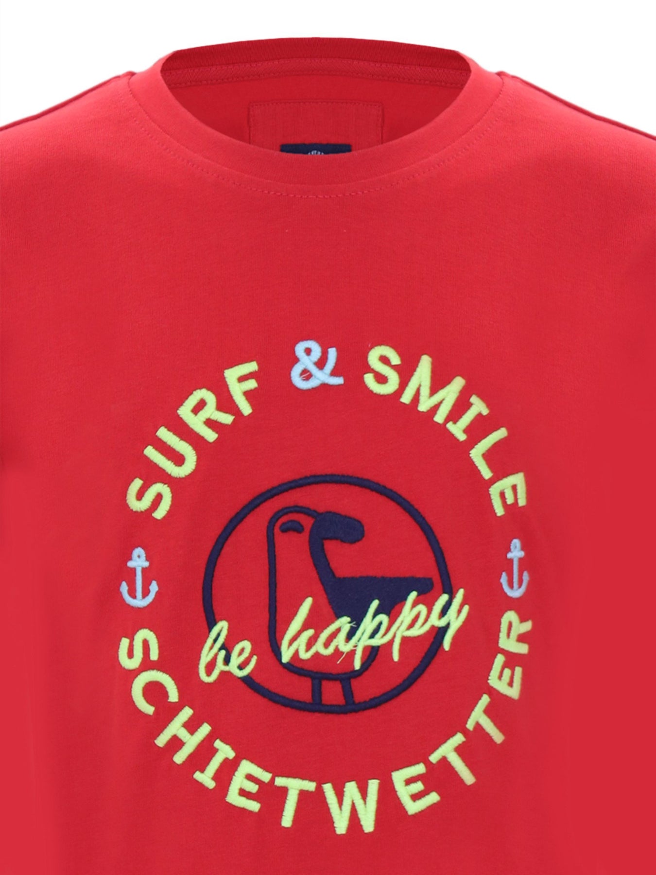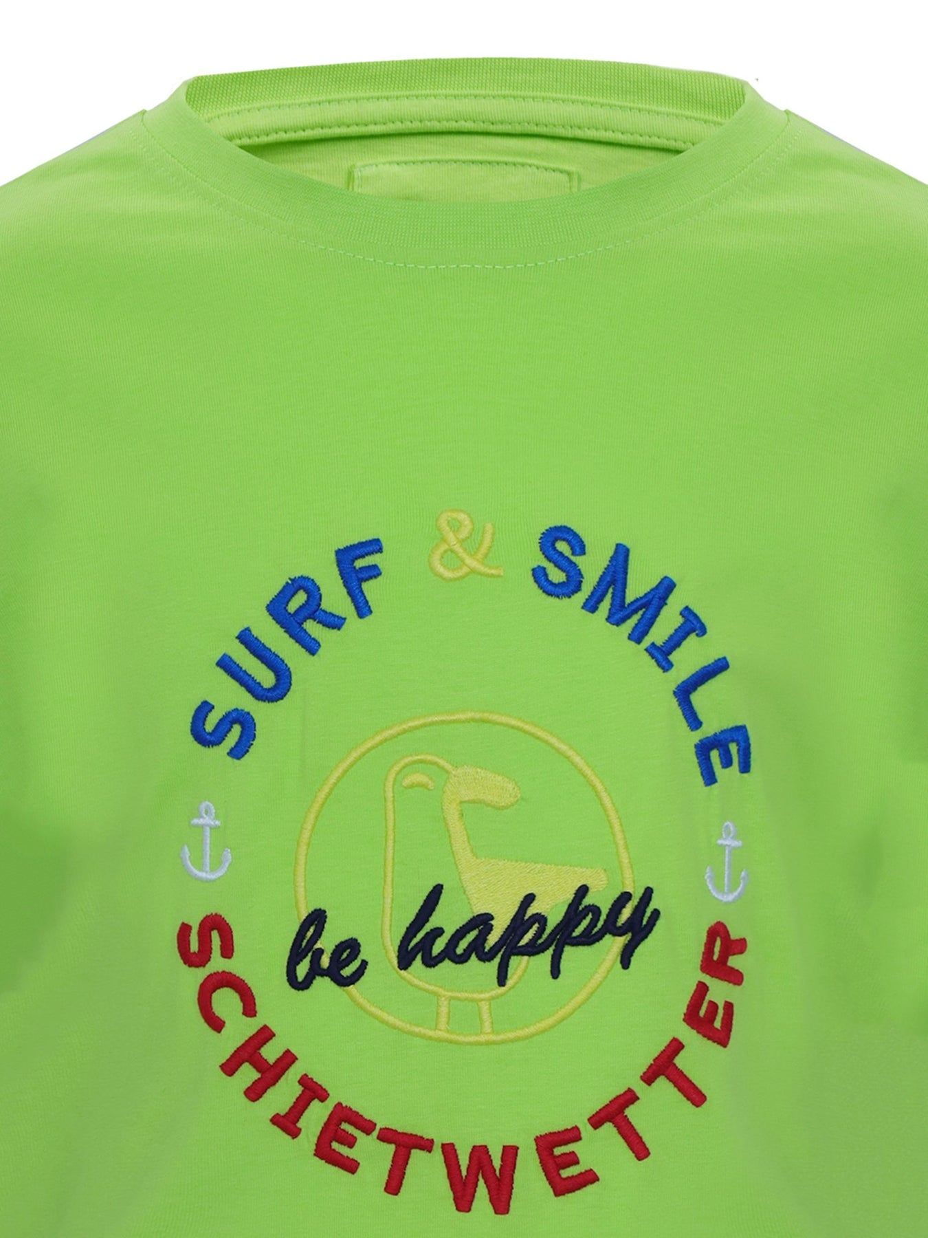 Besonderes Highlight sind die liebevoll klein gestickte Möwe auf der Rückseite und der fröhliche Be happy-Schriftzug mit großer Möwe auf der Vorderseite. Diese Details verleihen dem Kinder T-Shirt das gewisse Etwas und zaubern ein Lächeln auf jedes Gesicht. Das T-Shirt Joe ist nicht nur ein verspieltes Shirt, sondern ein farbenfrohes Lieblingsstück, das in keinem Kinderkleiderschrank fehlen darf. Perfekt kombinierbar und stets ein Hingucker – das Shirt für Mädchen und Jungen, das Spaß und Stil vereint!