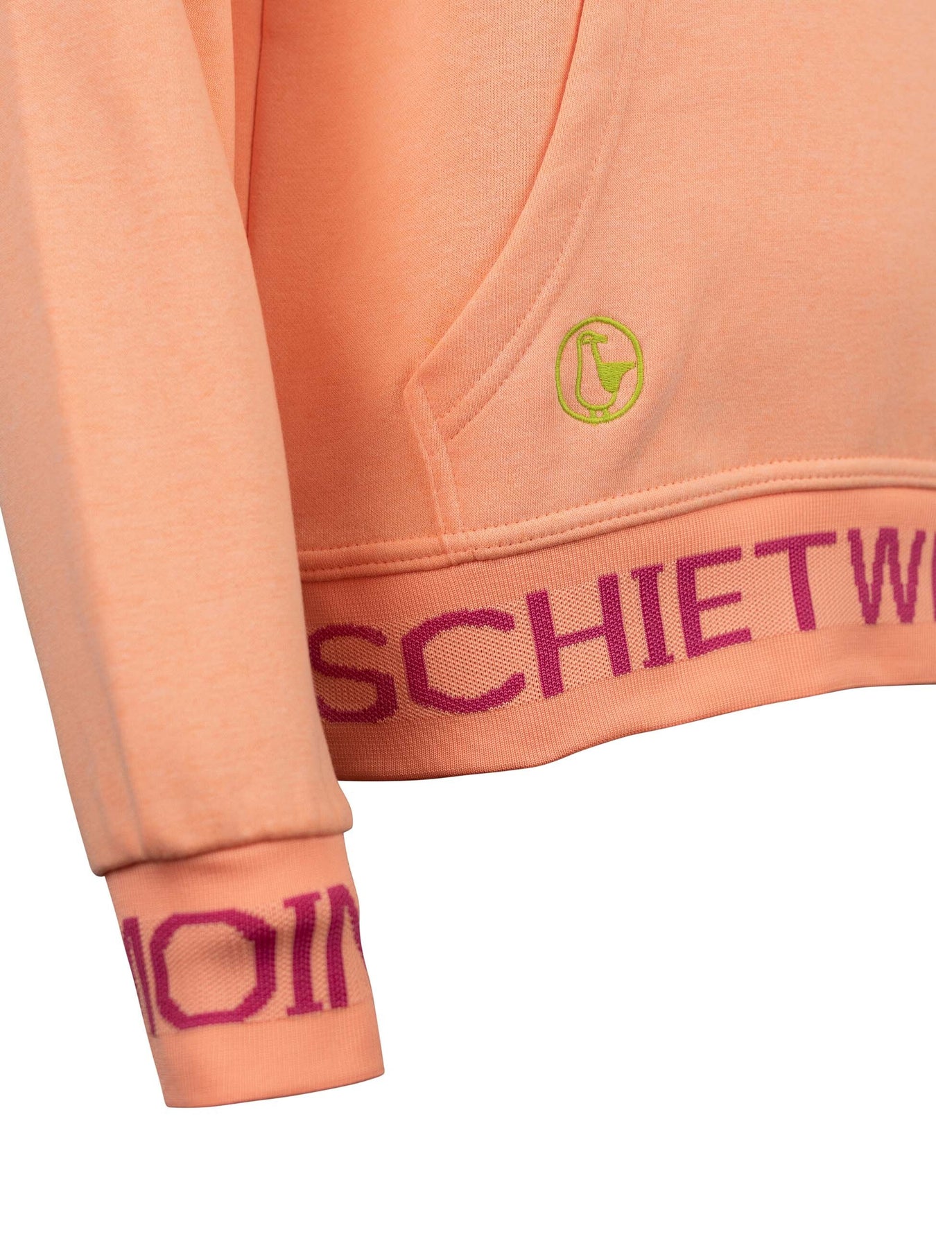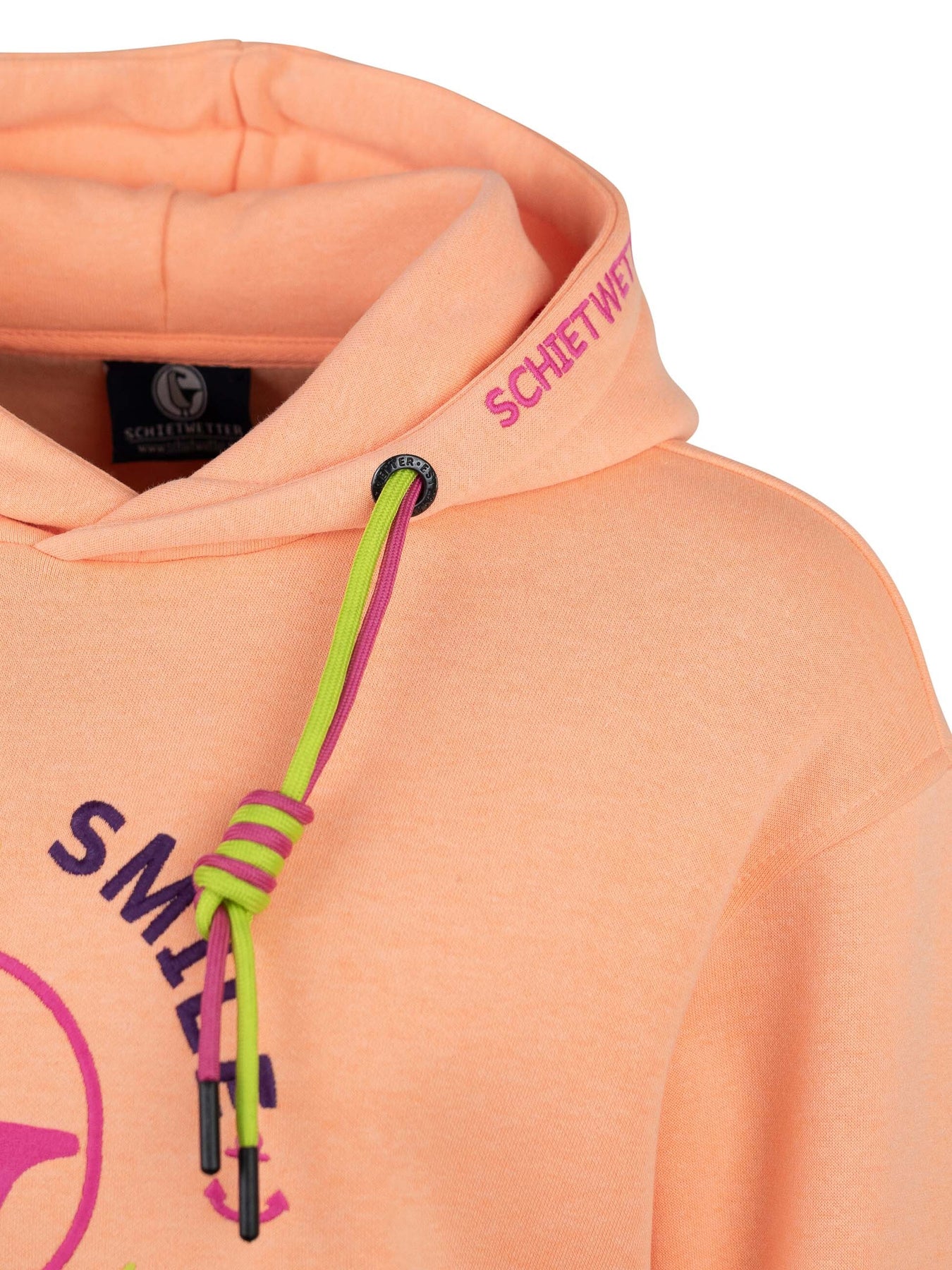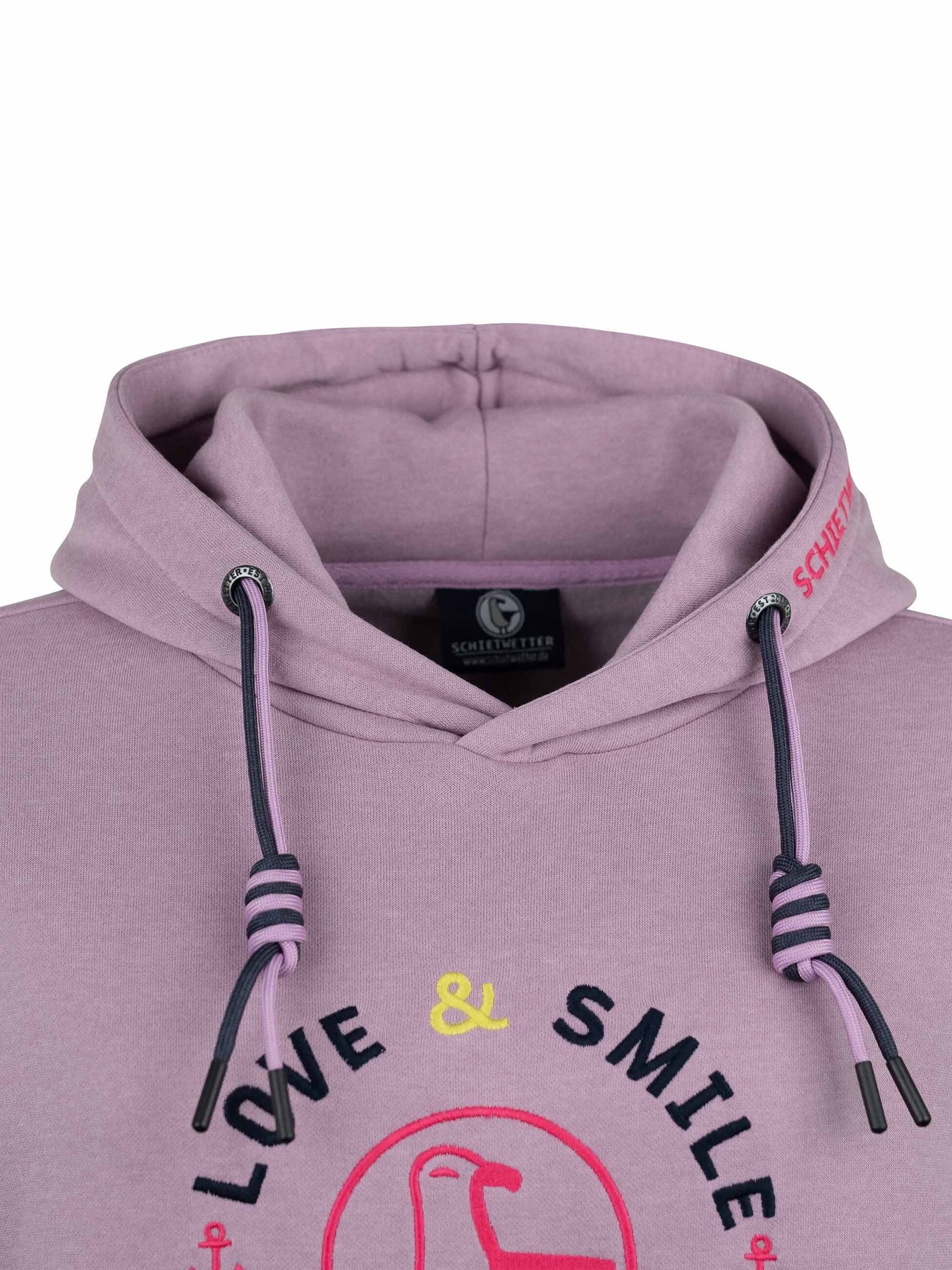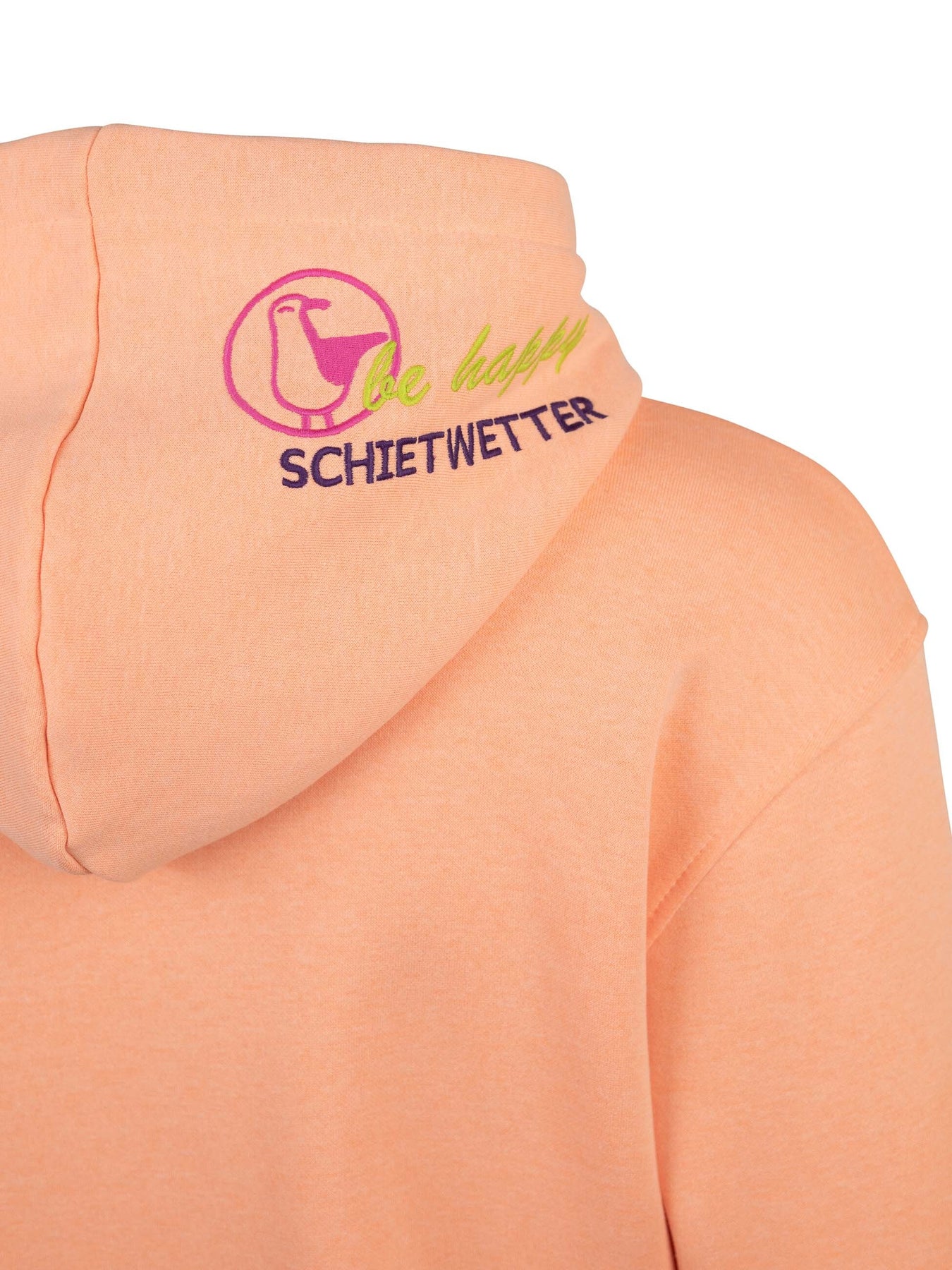 Mit seiner liebevollen Stickerei, den zweifarbigen Kordeln an der Kapuze und den maritimen Details wie dem gestickten Schietwetter-Schriftzug am Bauchbund sowie Moin an den Ärmeln bringt dieser Langarm Hoodie echtes Küstenflair in deinen Alltag. Die große Kängurutasche wärmt nicht nur deine Hände, sondern bietet auch Platz für Kleinigkeiten unterwegs.