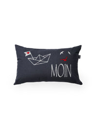 - MARITIMER KISSENBEZUG: MOIN" Schriftzug, Papierboot und Möwen für maritimes Flair "