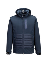 - STILVOLL: Die Softshelljacke besticht durch ihr modernes Design in Teil-Daunen-Optik.