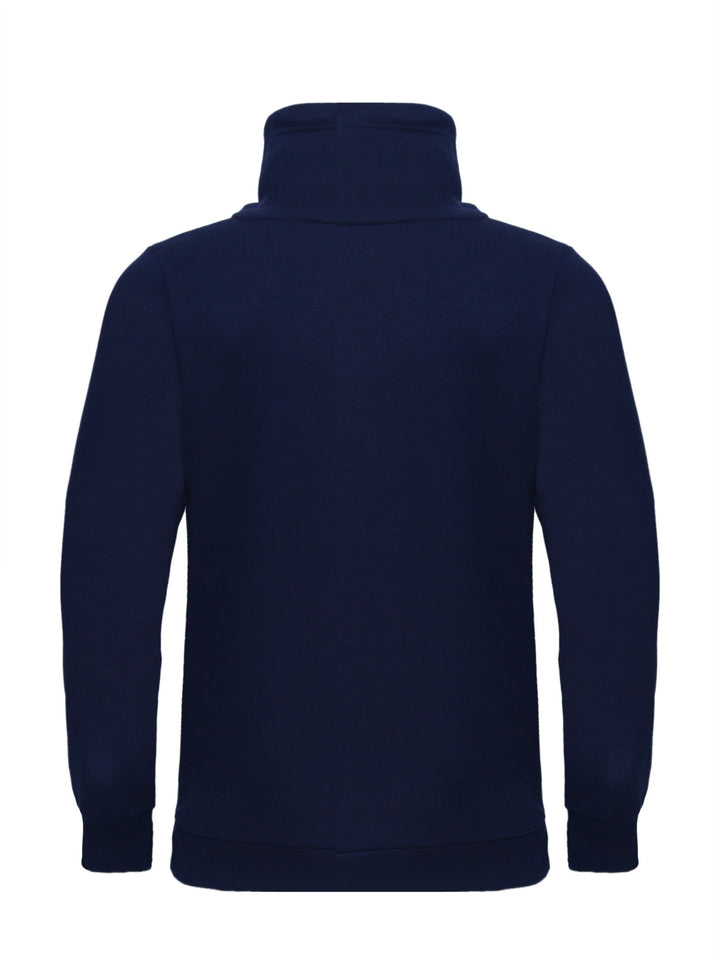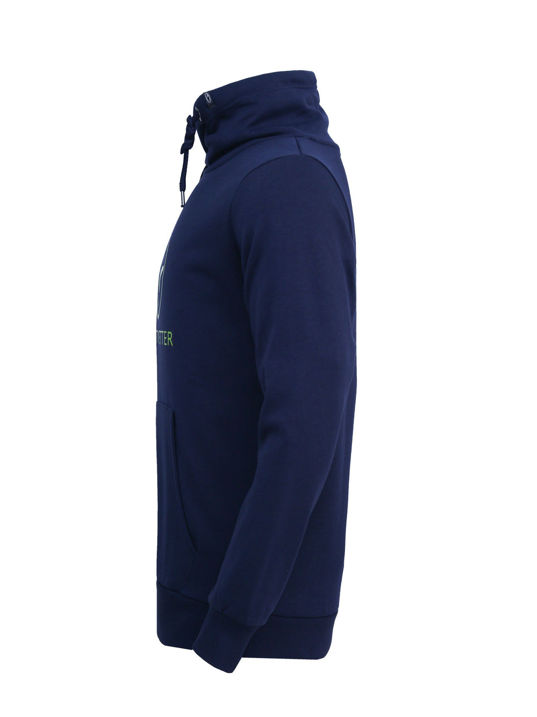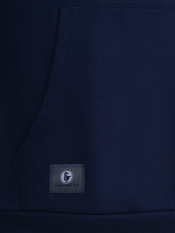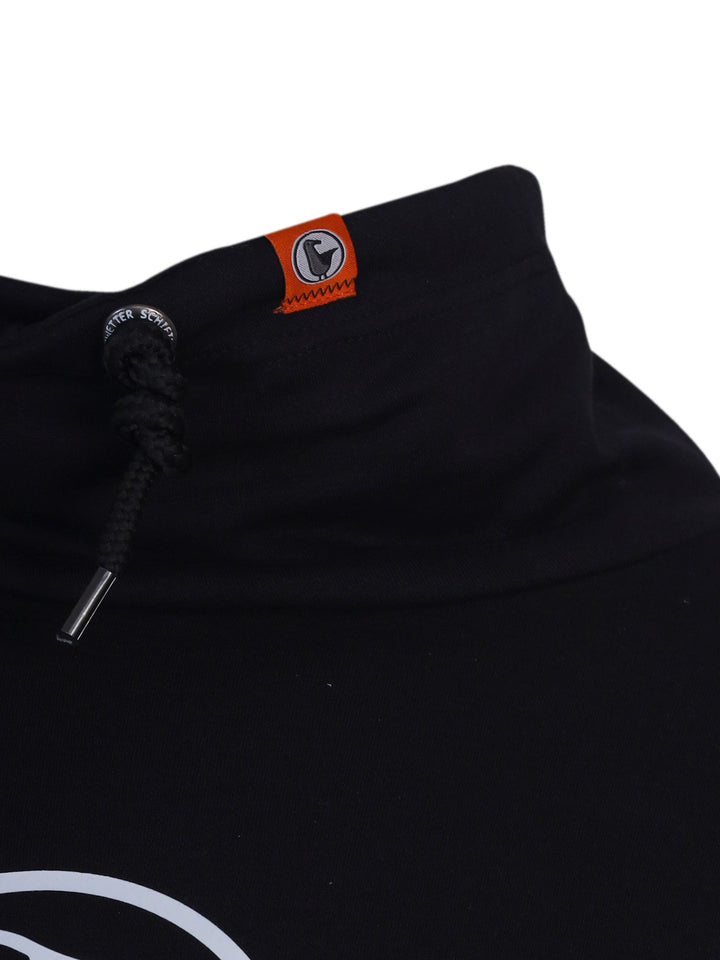 Hergestellt aus 60% Baumwolle, bietet der Schalkragen-Pullover ein weiches, atmungsaktives Tragegefühl, das Dich durch Herbst und Winter begleitet. Die breiten, elastischen Bündchen an Ärmeln und Bauch sorgen für einen optimalen Sitz, während die praktische Kängurutasche Deine Hände wärmt oder Platz für Kleinigkeiten bietet. Der Stehkragen mit Kordelzug verleiht zusätzlichen Schutz und Flexibilität.