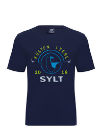 Gefertigt aus 100% Baumwolle, bietet das T-Shirt einen angenehmen Tragekomfort und sorgt dafür, dass du dich den ganzen Tag über wohlfühlst. Das besondere Highlight ist die hochwertige 3D-Prägung mit buntem Foliendruck: Die markante Schietwettermöwe und die Rundschrift „Küstenliebe“ mit dem darunter stehenden „Sylt“ machen das Shirt zu einem echten Hingucker.